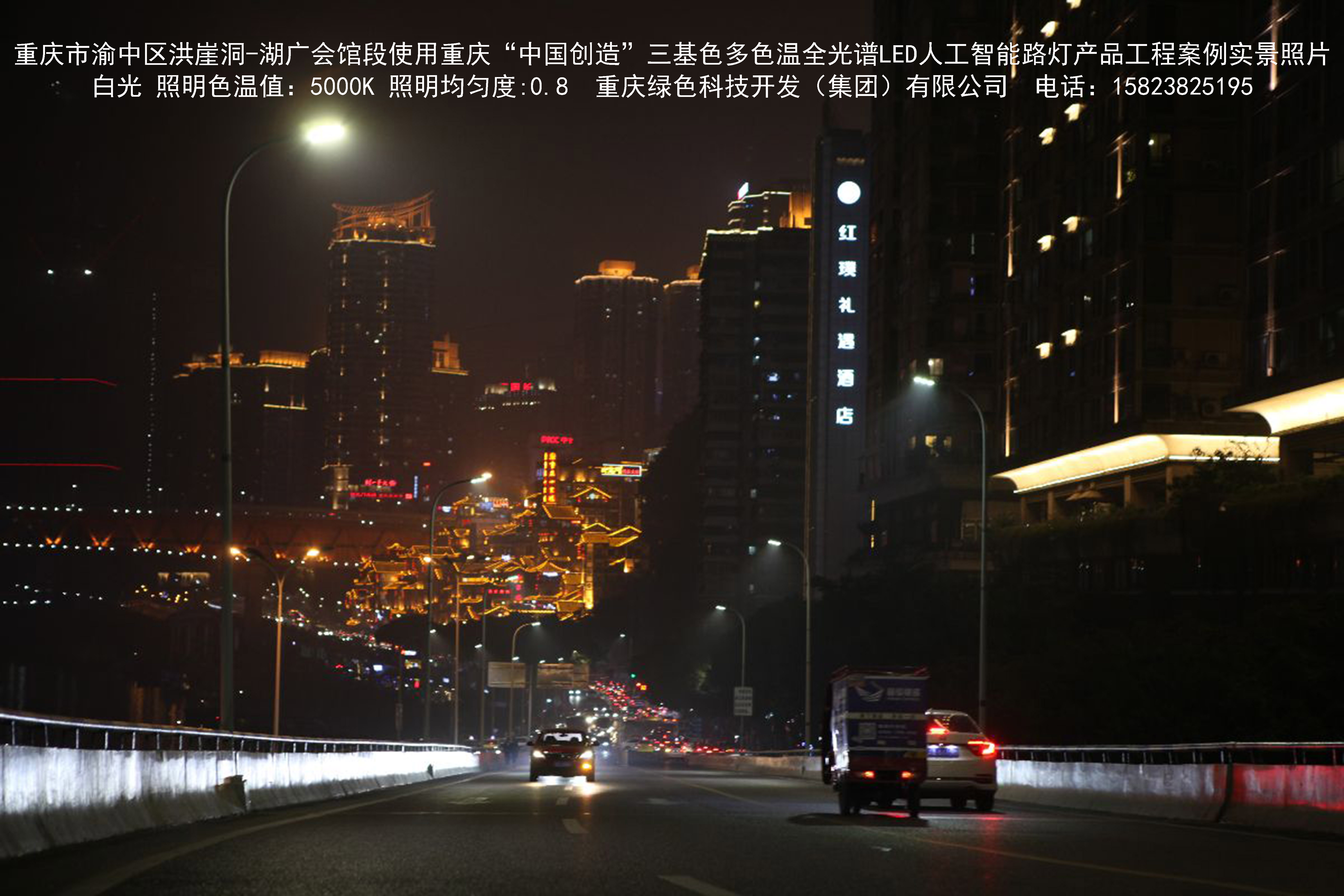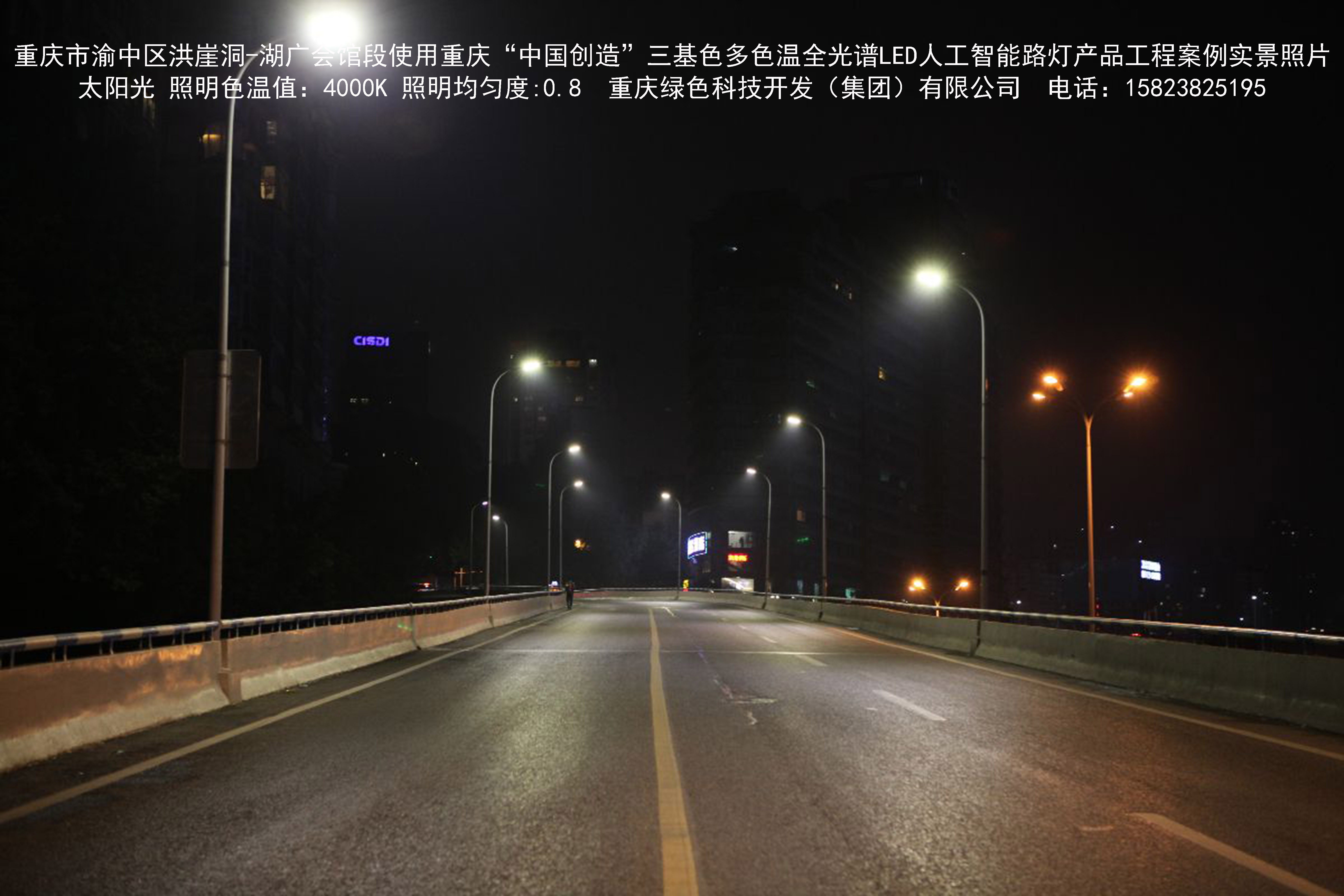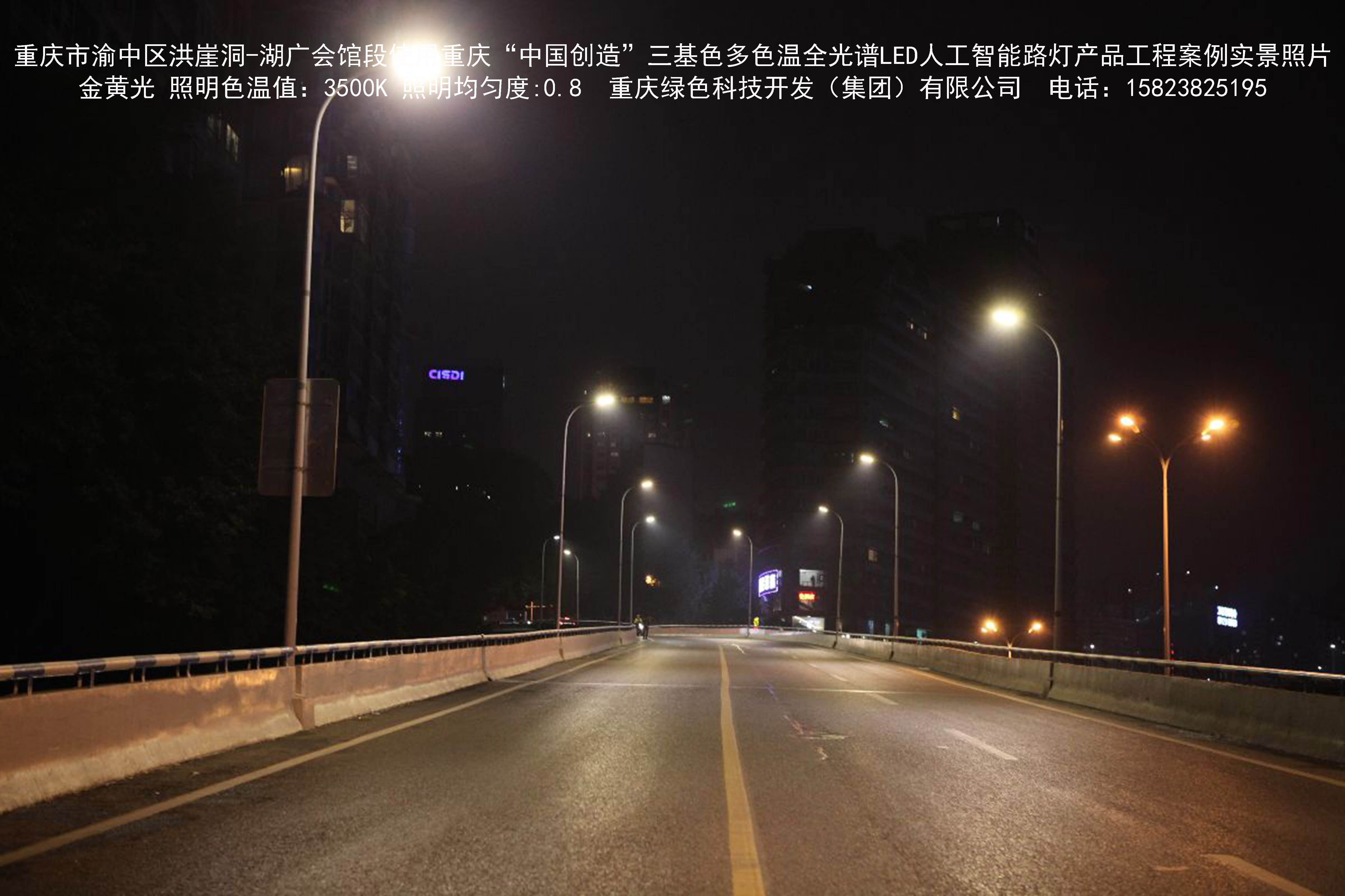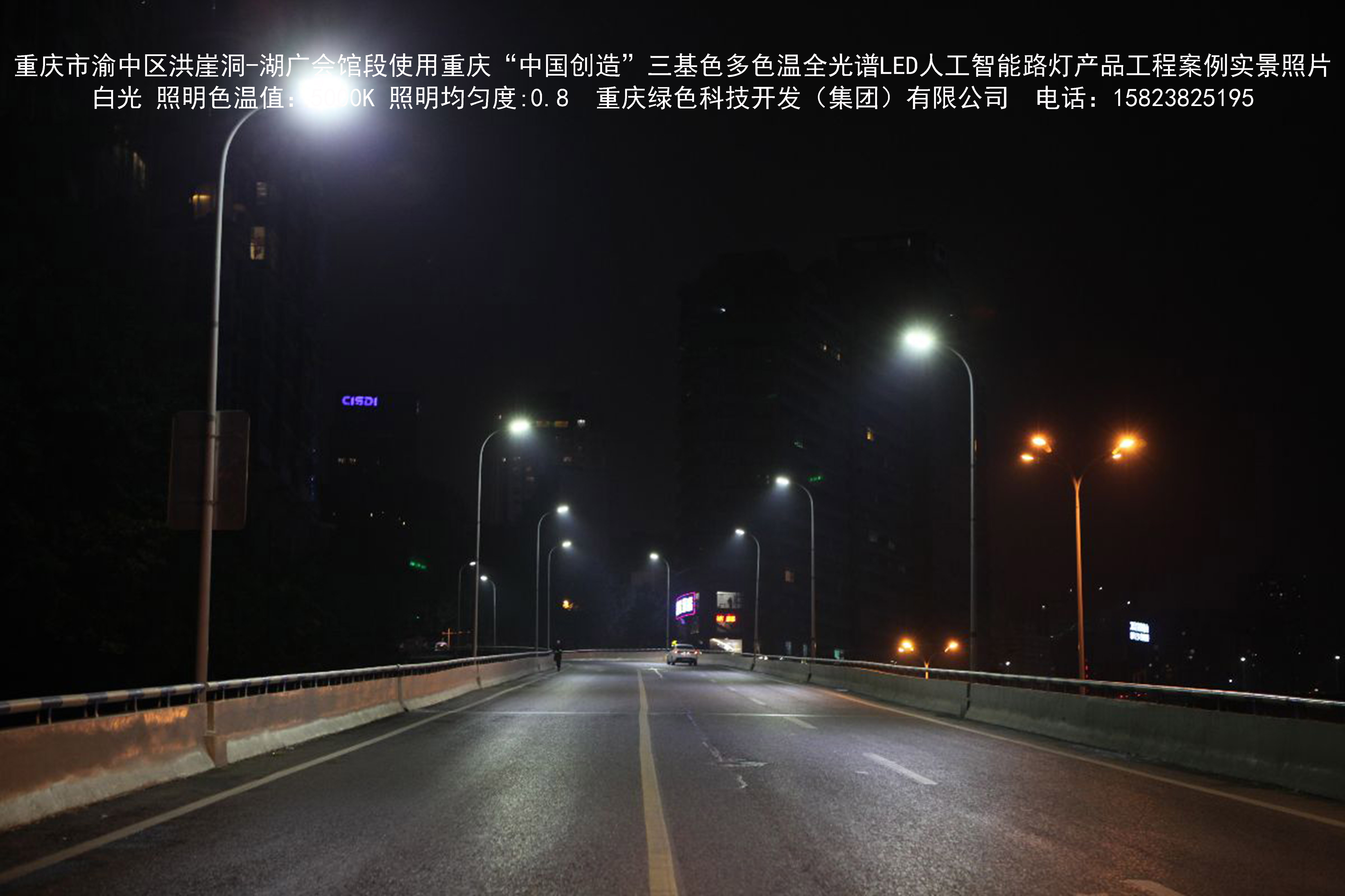 2018年12月,重慶市城市照明管理局使用我司自主研發(fā)制造的重慶“中國(guó)創(chuàng)造”三基色多色溫全光譜LED人工智能路燈系列產(chǎn)品,實(shí)施了渝中區(qū)市政設(shè)施品質(zhì)提升工程。該工程已全面竣工。工程實(shí)施后,極大地提高了城市照明清晰度、燈光均勻度、舒適度。通過(guò)智能終端實(shí)現(xiàn)單燈感知、線纜防盜報(bào)警,與原高壓鈉燈相比,節(jié)能率60%以上,有效解決了關(guān)閉控制回路或間隔關(guān)燈方式造成的照明暗區(qū),確保行人和車輛通行的安全,實(shí)現(xiàn)城市路燈照明系統(tǒng)的智能化管理,推進(jìn)了智慧城市建設(shè)。